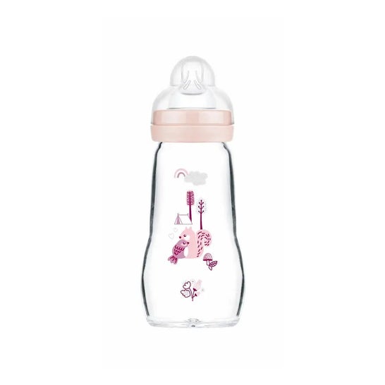 Mam Feel Good Biberon Cristal Rosa +0 Meses 260ml. *A cor ou o design pode variar dependendo da disponibilidade.