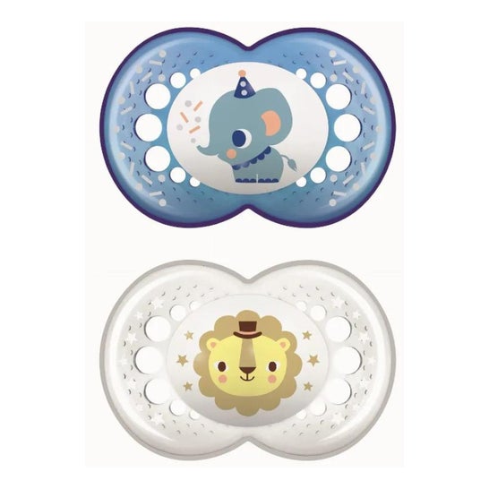 Chupeta para bebês de mais de 16 meses de idade que está fabricada com uma tetina de silicone que está especialmente desenvolvida para reduzir o risco de malposições dentárias, ajudando a ter dentes saudáveis e um desenvolvimento correto da mandíbula.