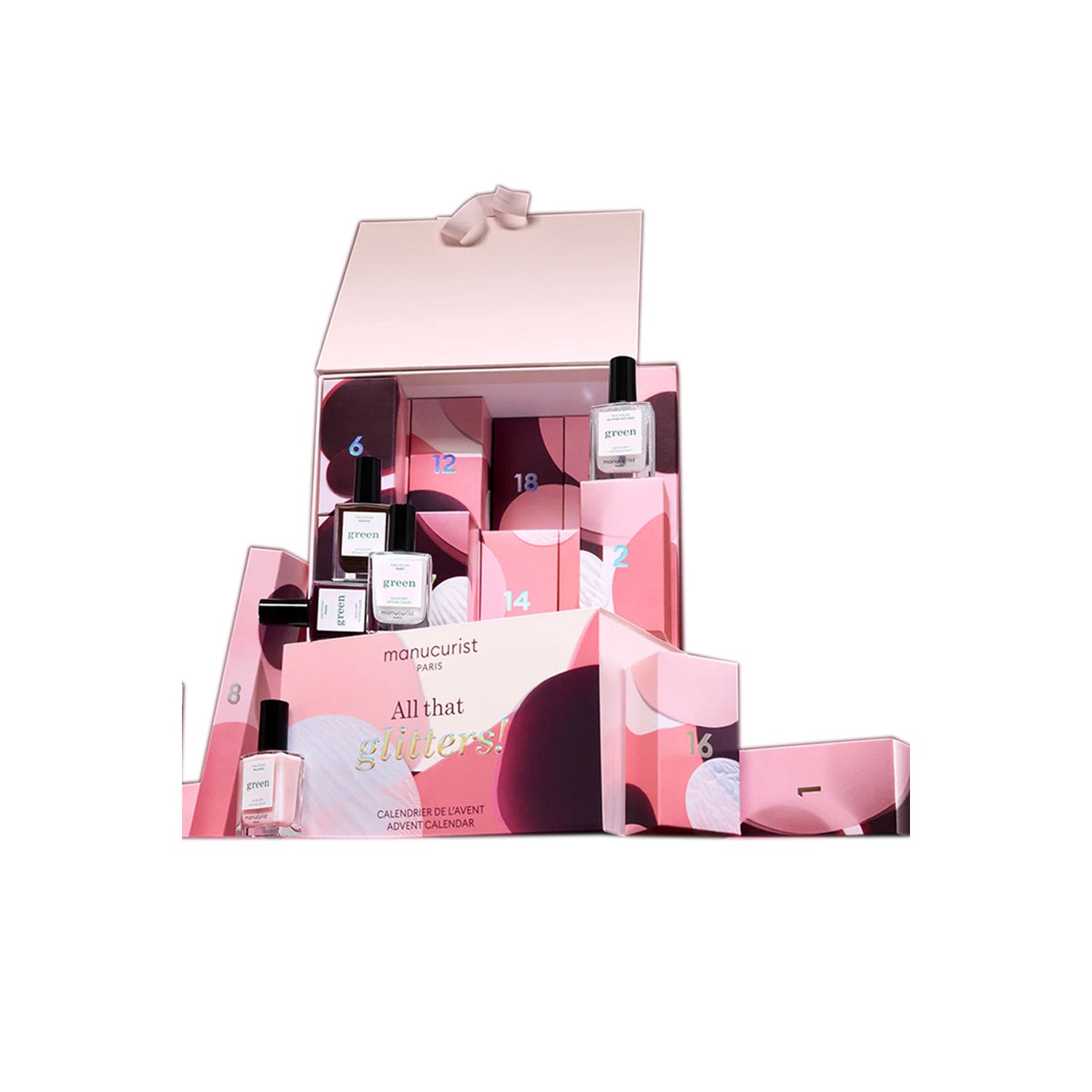 Manucurist All That Glitters! O Calendário do Advento é uma proposta excepcional que inclui uma seleção de 24 produtos em tamanho real, ideal para embelezar suas unhas durante a temporada festiva. Este calendário de advento apresenta uma variedade de surpresas diárias que abrangem a linha Active™, Green™ e diversos acessórios para o cuidado das unhas.