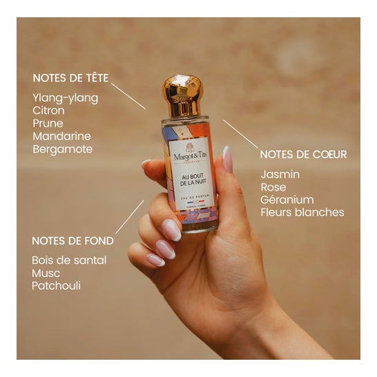 Margot & Tita Au Bout de la Nuit Eau de Parfum 30ml é uma eau de parfum floral e envolvente, que mistura a delicadeza da rosa e do jasmim com a profundidade do almíscar.