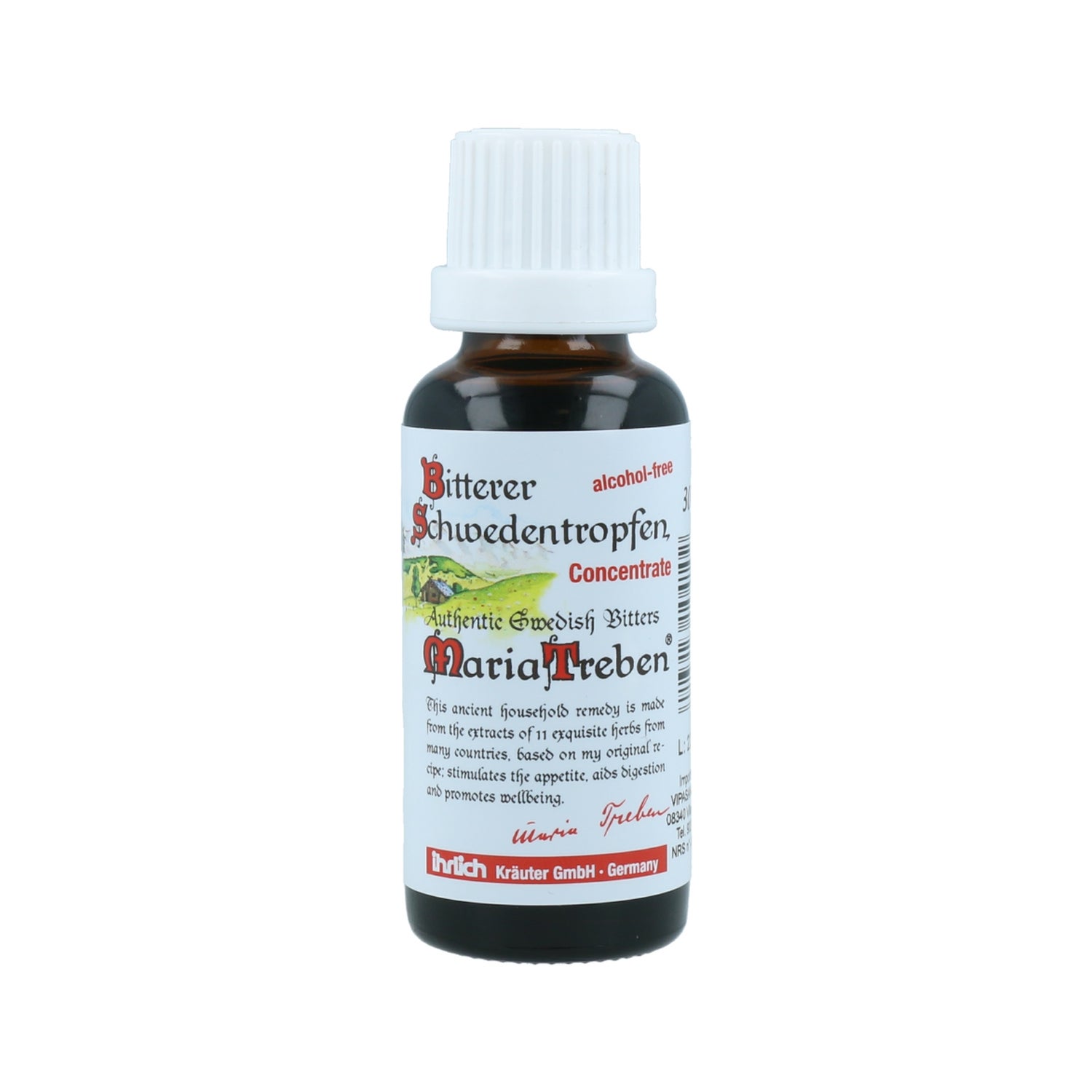 Extrato de ervas suecas sem álcool. Alternativa para crianças, bem como para pessoas idosas, intolerantes ao álcool e abstémios, que queiram experimentar a formulação à base de plantas de "Swedish Bitters" segundo a receita de Maria Treben. Formulado com os ingredientes activos das plantas tradicionais. O concentrado de 30 ml é utilizado para fazer uma tintura de 0,7 litros de volume com álcool de qualidade alimentar. Ajuda a melhorar o bem-estar e a fortalecer o corpo.