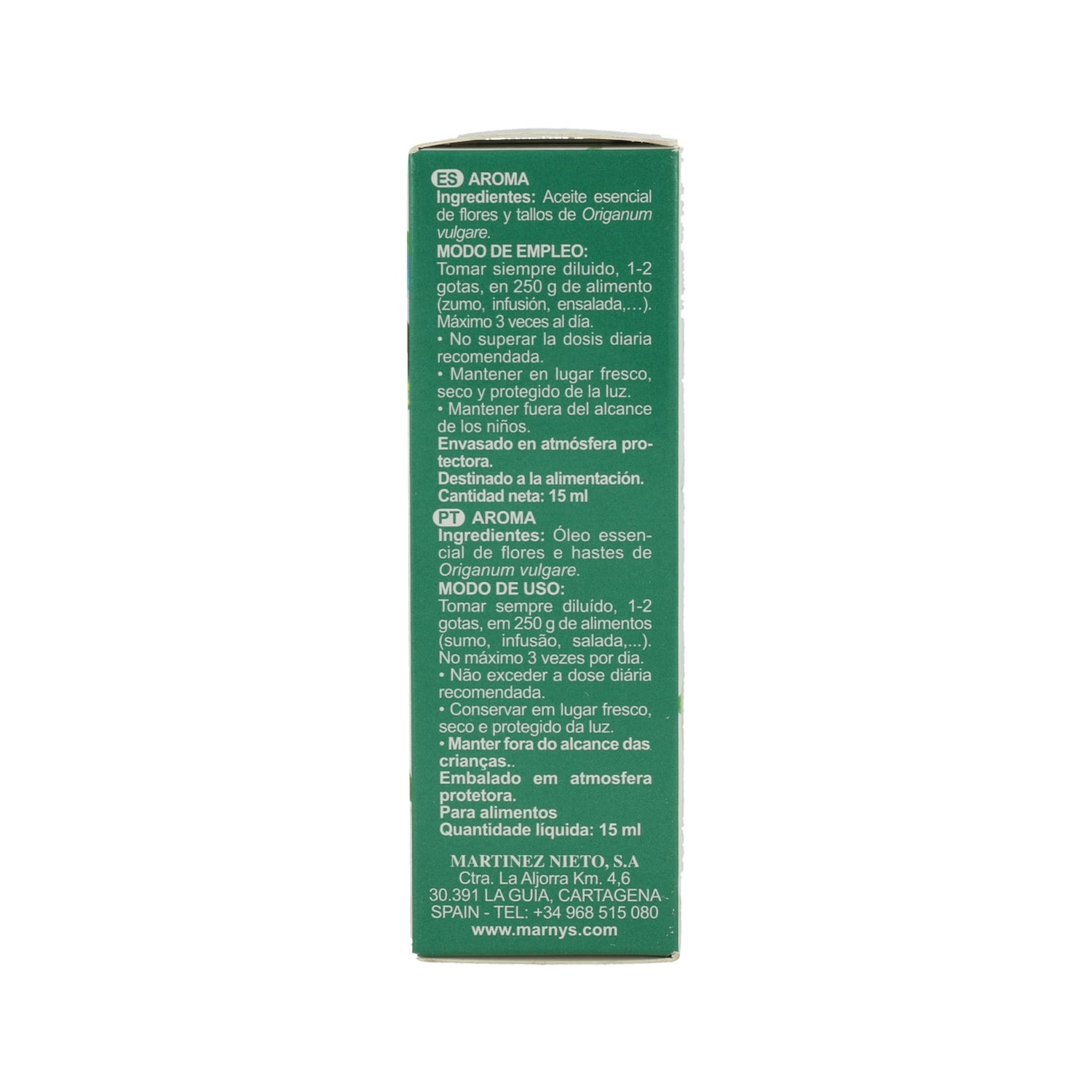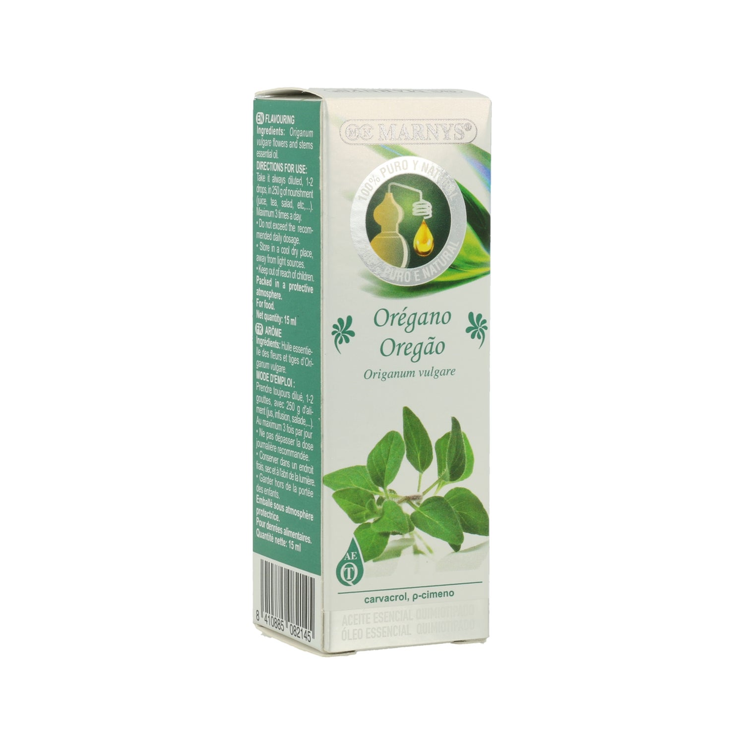 O óleo essencial de orégãos, 100% puro e de origem natural, obtido por destilação a vapor das flores e dos caules, não foi misturado com outros óleos, o que garante as suas propriedades. A sua cor e aspeto são incolores, tendendo do amarelo ao castanho escuro, com um sabor aromático e picante. É geralmente utilizado para realçar o sabor de alimentos como pizzas, molhos para massas, legumes, malaguetas ou saladas.