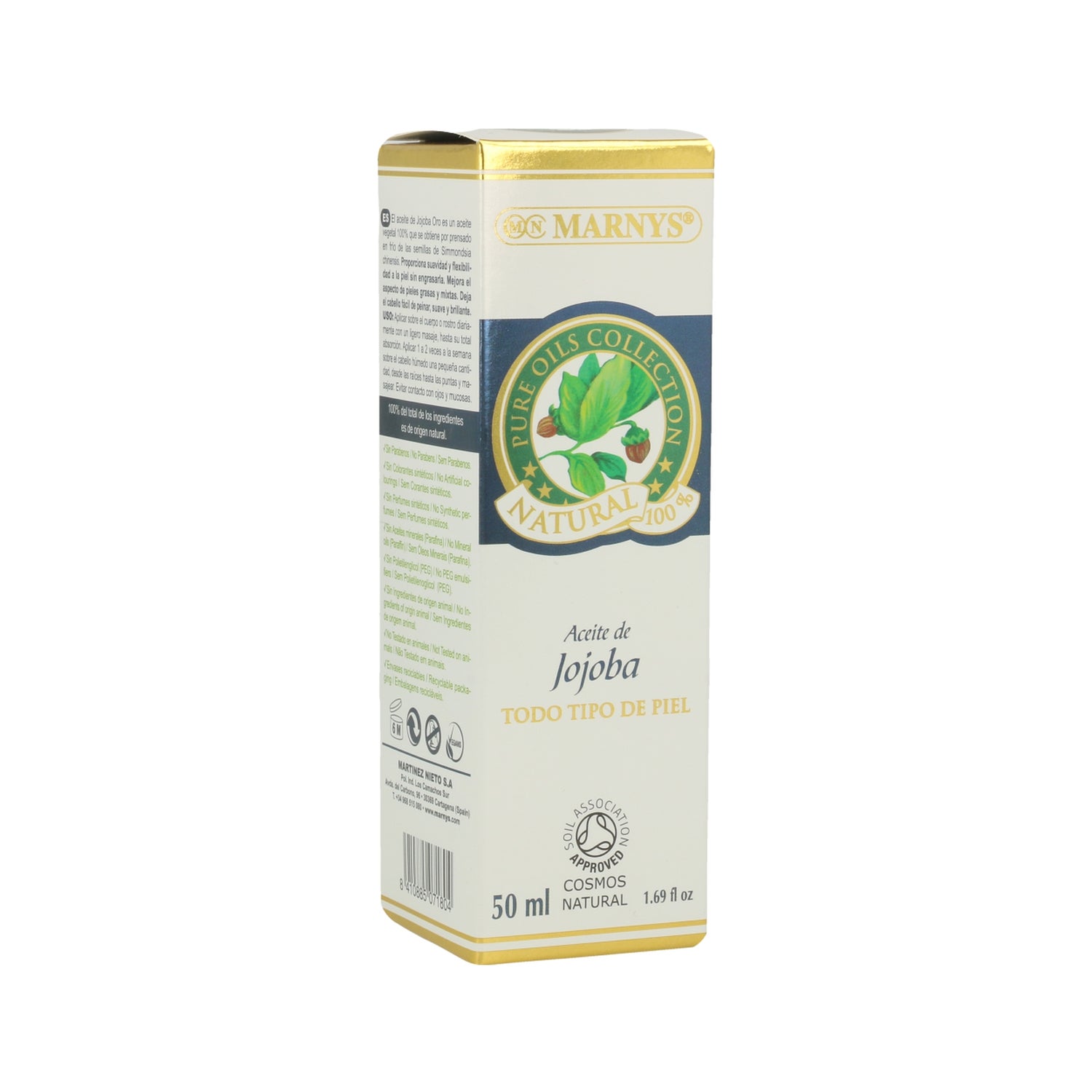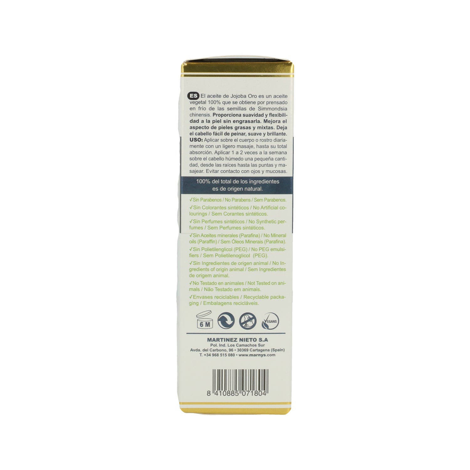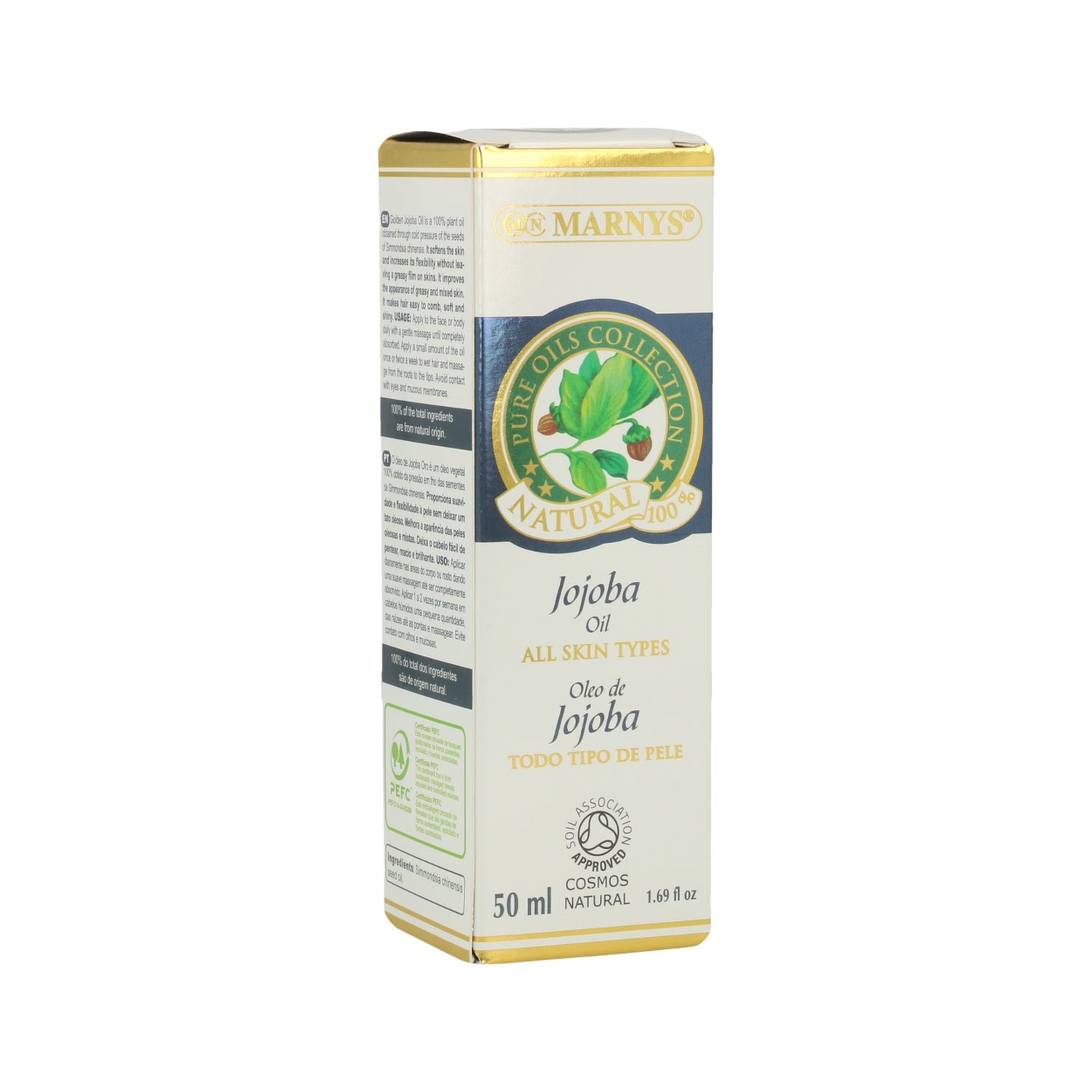 Óleo de jojoba reparador, que restaura o equilíbrio oleoso da pele e do cabelo, deixando este último fácil de pentear, suave e brilhante.