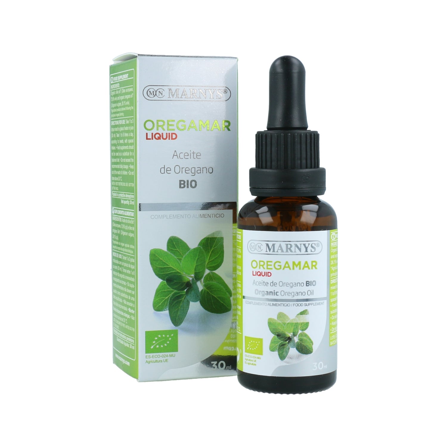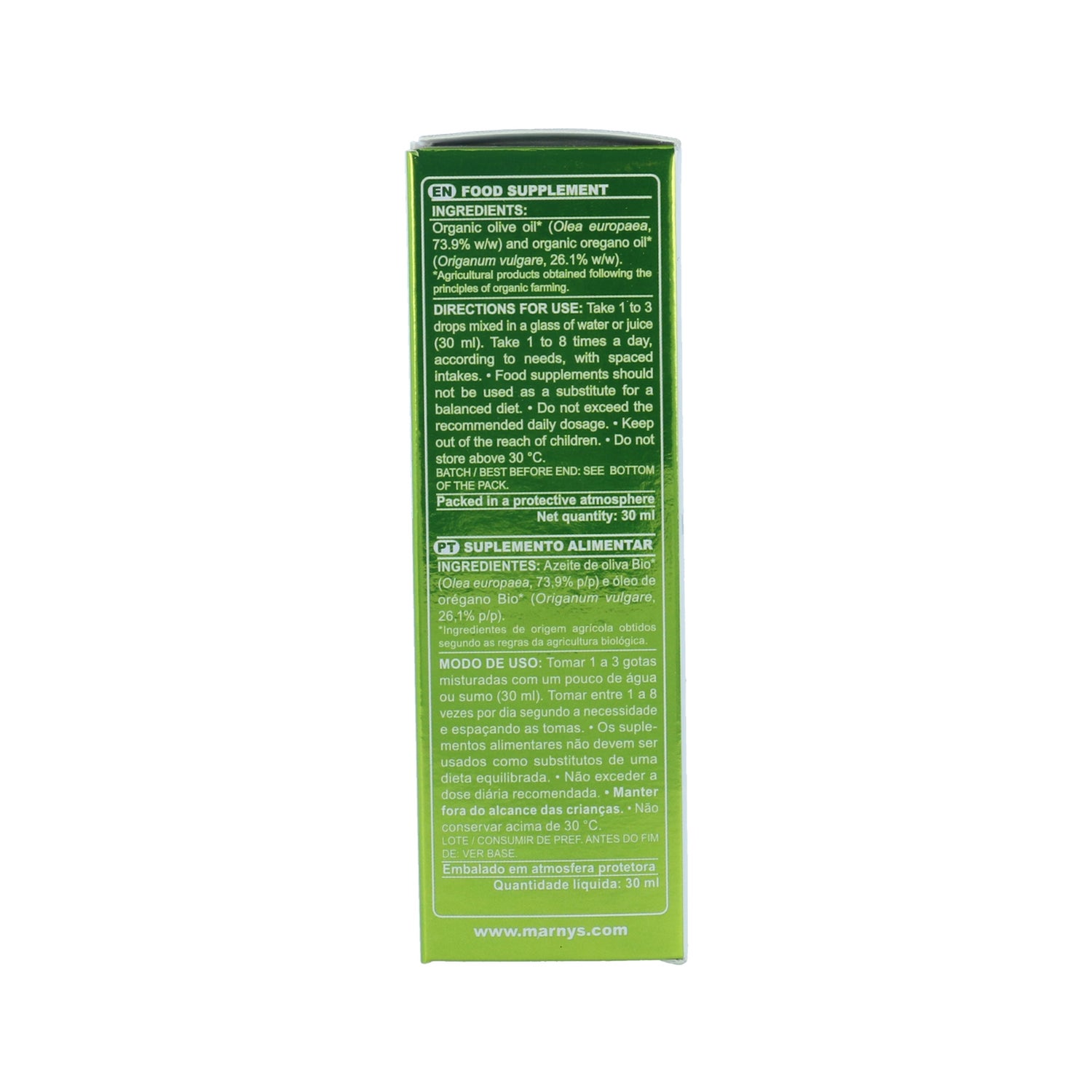 Marnys Oregano Oil é um produto feito com ingredientes 100% de cultivo orgânico, garantindo a sua pureza e qualidade. É feito de óleo puro de orégãos mediterrânicos (Origanum minutiflorum), e é notável pelo seu elevado conteúdo de ingredientes activos como o carvacrol e o timol, que têm propriedades anti-sépticas e antibióticas