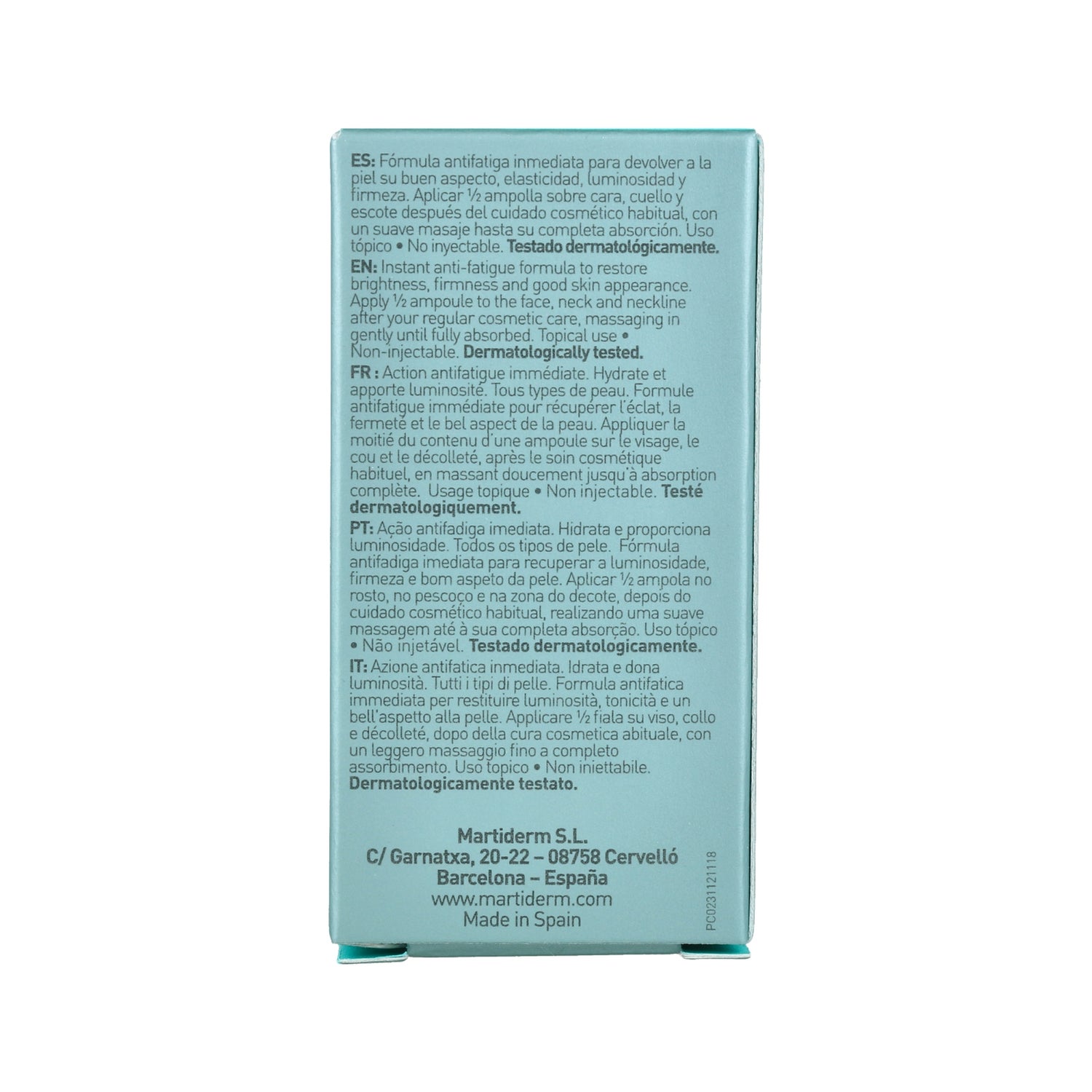 Martiderm® Immediate Anti-Fatigue Flash Action 1 ampoule é uma solução líquida que proporciona à sua pele um tratamento intensivo e imediato que irá reduzir consideravelmente as imperfeições e a aparência cansada do rosto.