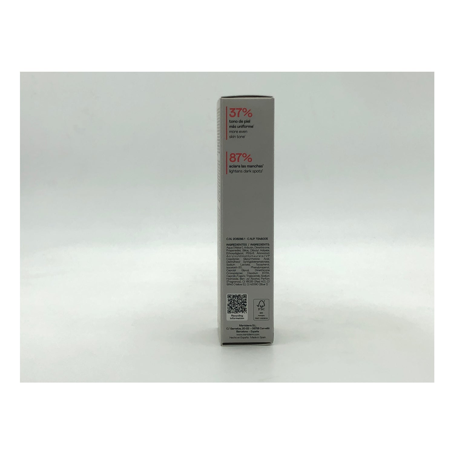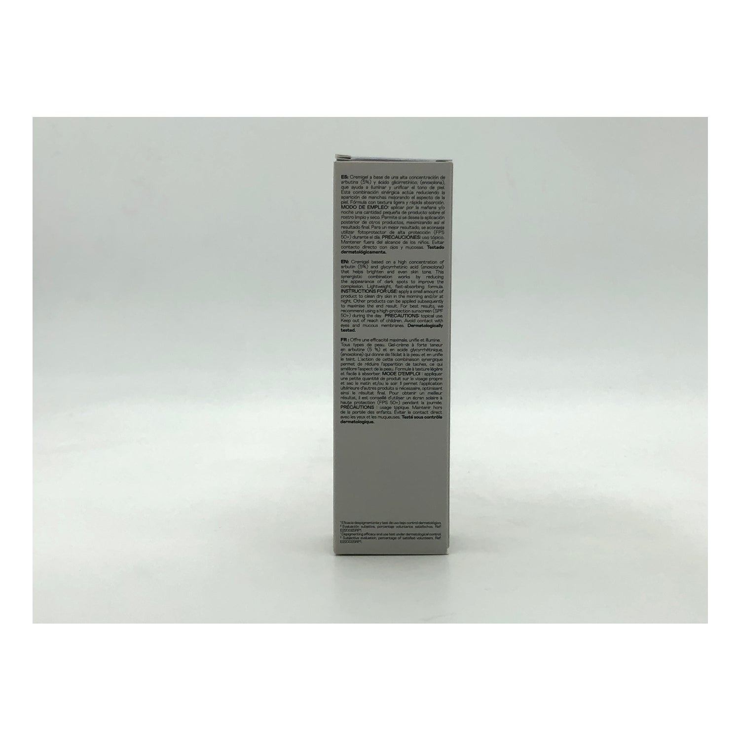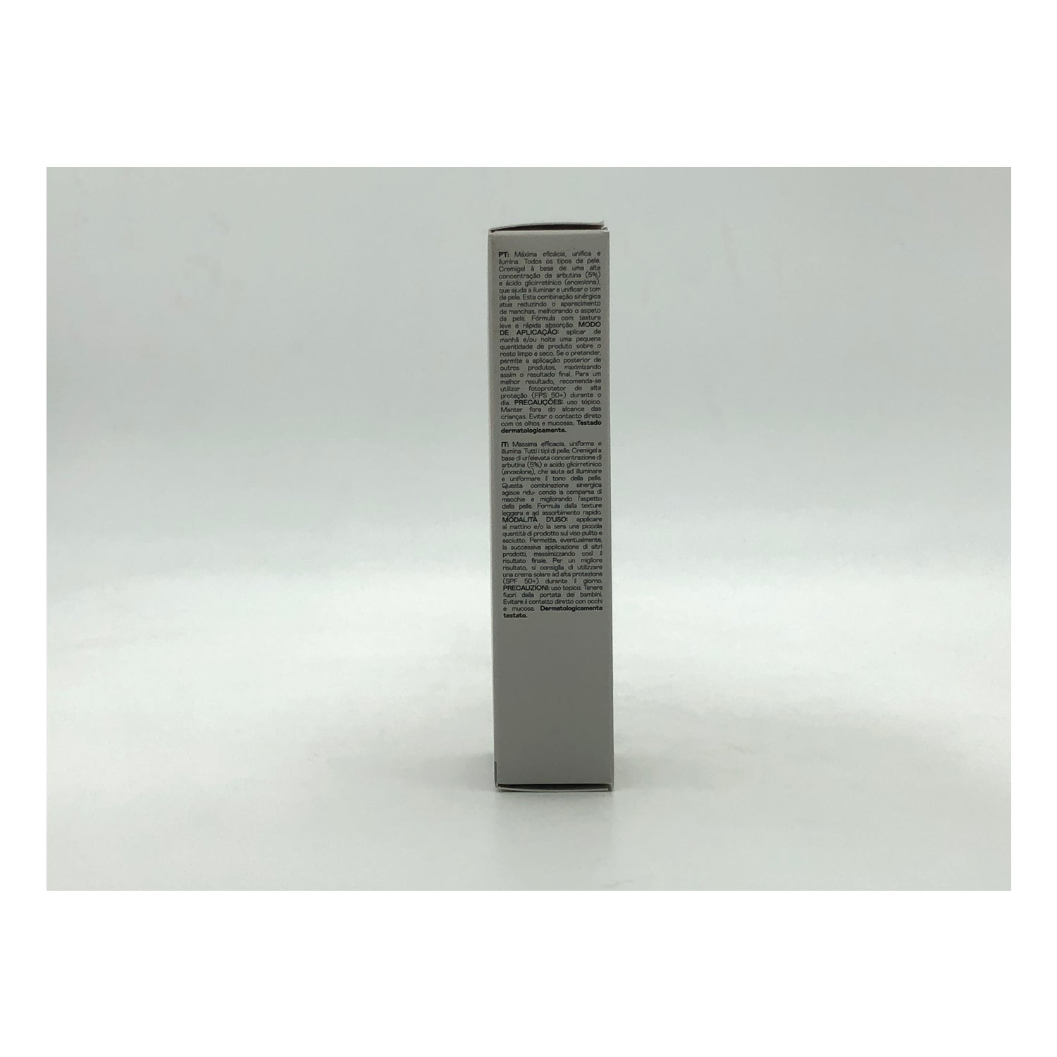 É feito com uma alta concentração de arbutina (5%) e ácido glicirretínico, que promove os processos naturais de cura da epiderme.