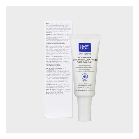 Martiderm Rosarepair Fluid Emulsion SPF30 40ml é uma emulsão facial fluida