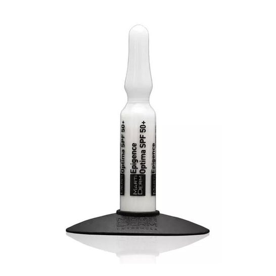 Martiderm Epigence Optima Spf 50+ 10 ampolas com uma revolucionária fórmula global anti-envelhecimento, que protege contra os raios UV, IR e luz azul e radiação emitida por dispositivos WIFI e Bluetooth. É indicado para pele seca e normal. Estas ampolas ajudam a recuperar a firmeza e elasticidade da pele, reforçando a acção anti-envelhecimento da pele. É para uso diário.