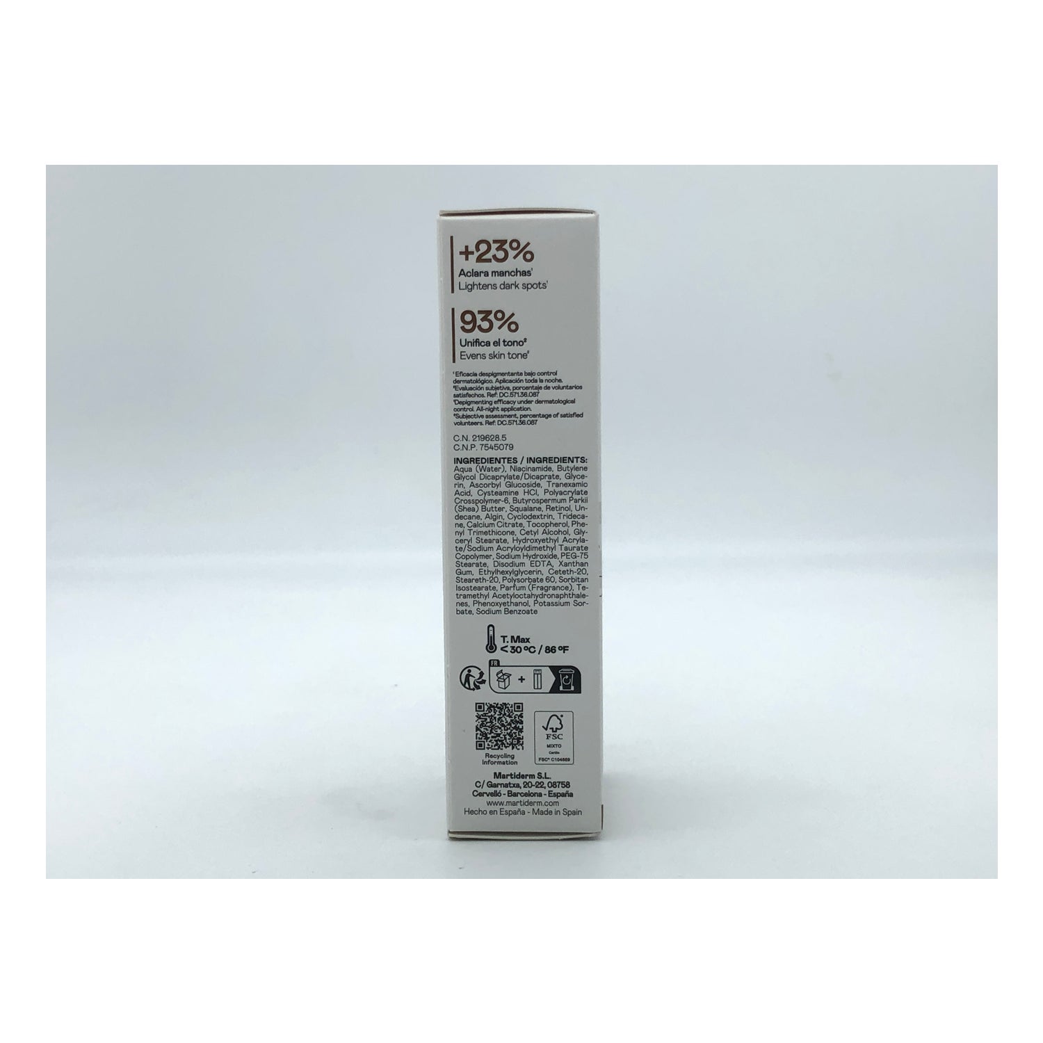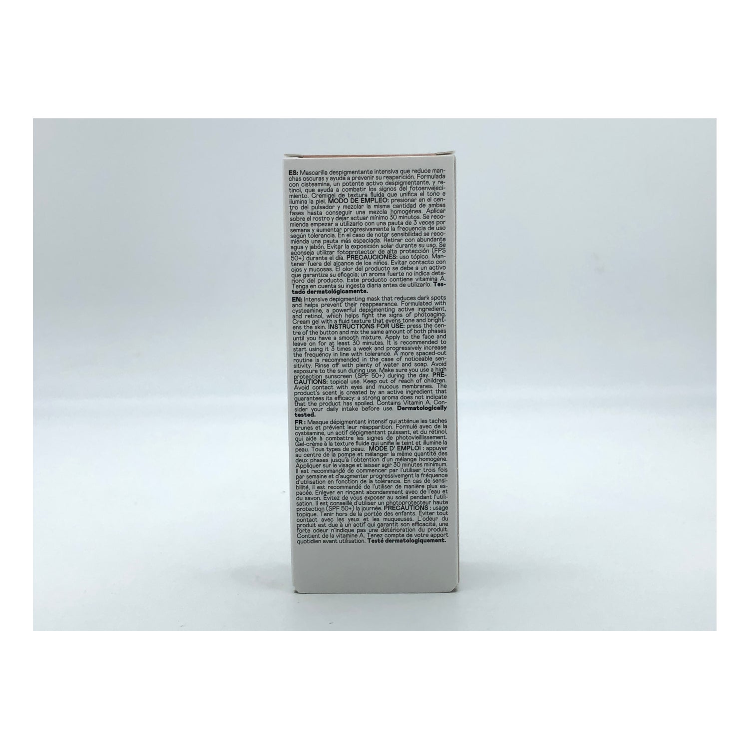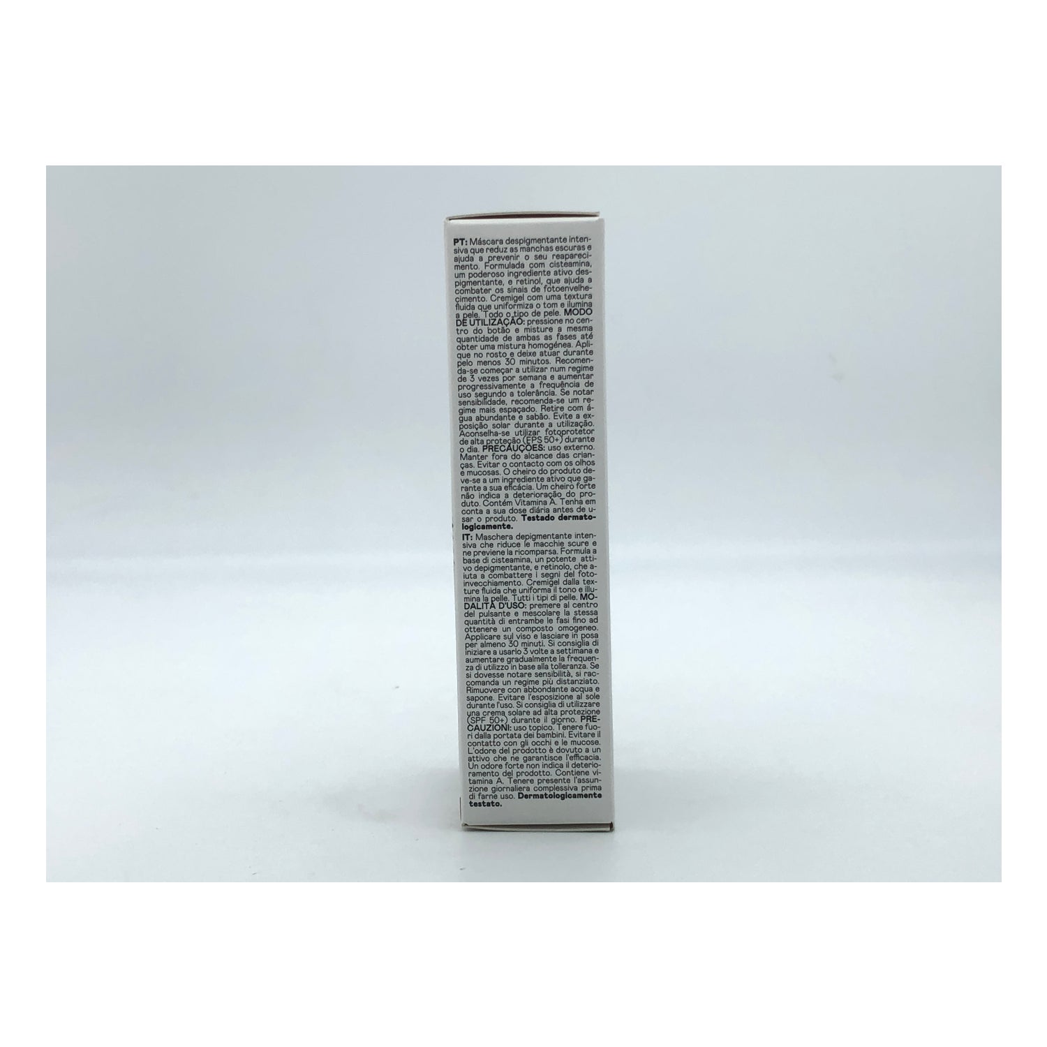 Formulada principalmente com cisteamina, um potente ativo despigmentante, e retinol, que ajuda a combater os sinais do fotoenvelhecimento e reduz as linhas de expressão.
