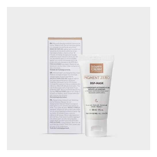 A Máscara Pigment Zero DSP da Martiderm é uma máscara despigmentante indicada para ajudar a regenerar a pele de forma rápida, graças à sua composição à base de ácido salicílico, a máscara atua sobre a melanina responsável pela coloração escura, de tal forma que atua para que as manchas sejam atenuadas até desaparecerem.