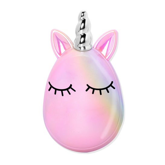Escova de cabelo compacta para brilhar, desembaraçar e proteger o cabelo. Tem um design de unicórnio e é fácil de transportar. Promove a distribuição de óleos naturais na fibra capilar. Promove a penteação rápida e fácil, com um design que permite a ventilação para oxigenar o couro cabeludo. Tem delicadas cerdas de porco-espinho feitas com uma combinação de cerdas sintéticas que ajudam a desembaraçar sem puxar. Adequado para todos os tipos de cabelo.