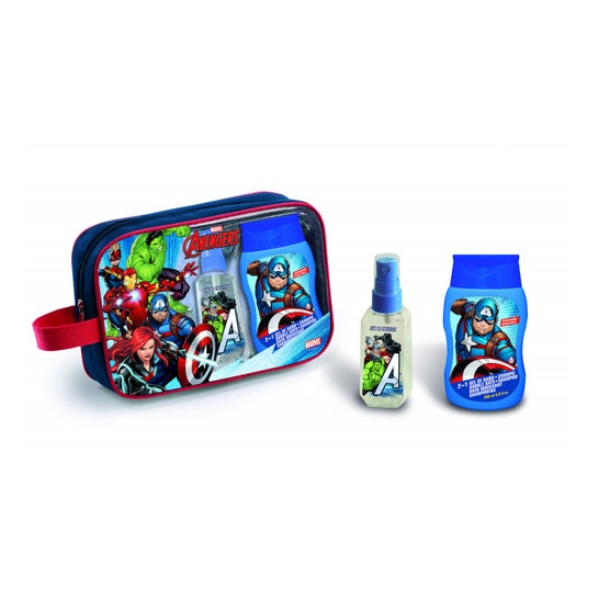 Conjunto Marvel Avengers Necessaire + Edt 90 ml + Gel de Ducha 200 ml é um conjunto projetado especialmente para os pequenos. Este conjunto inclui uma fragrância EDT dos Avengers, que se destaca pela sua frescura, ideal para o uso diário.