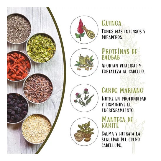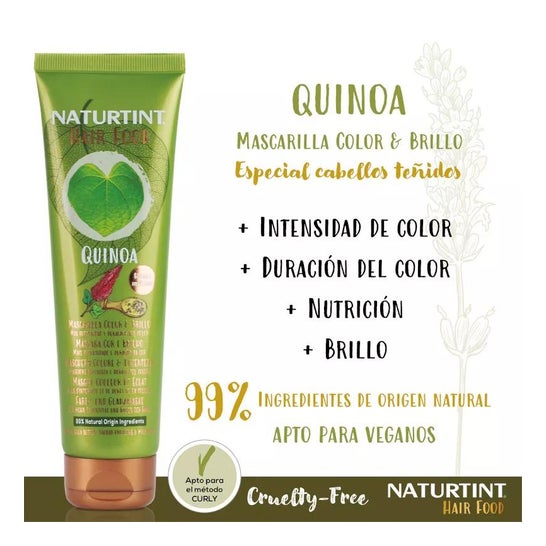 Máscara capilar feita de quinoa, uma superalimentação rica em vitaminas e minerais. Também fornece os oito aminoácidos essenciais, ajudando a reparar, nutrir e prolongar a intensidade e a duração da cor no cabelo pintado.