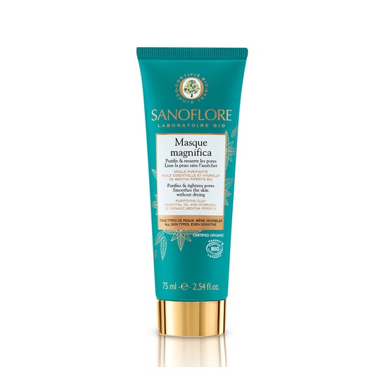 A máscara purificadora Sanoflore Magnifica é um tratamento orgânico certificado com argila branca e hortelã-pimenta, ideal para peles mistas a oleosas.