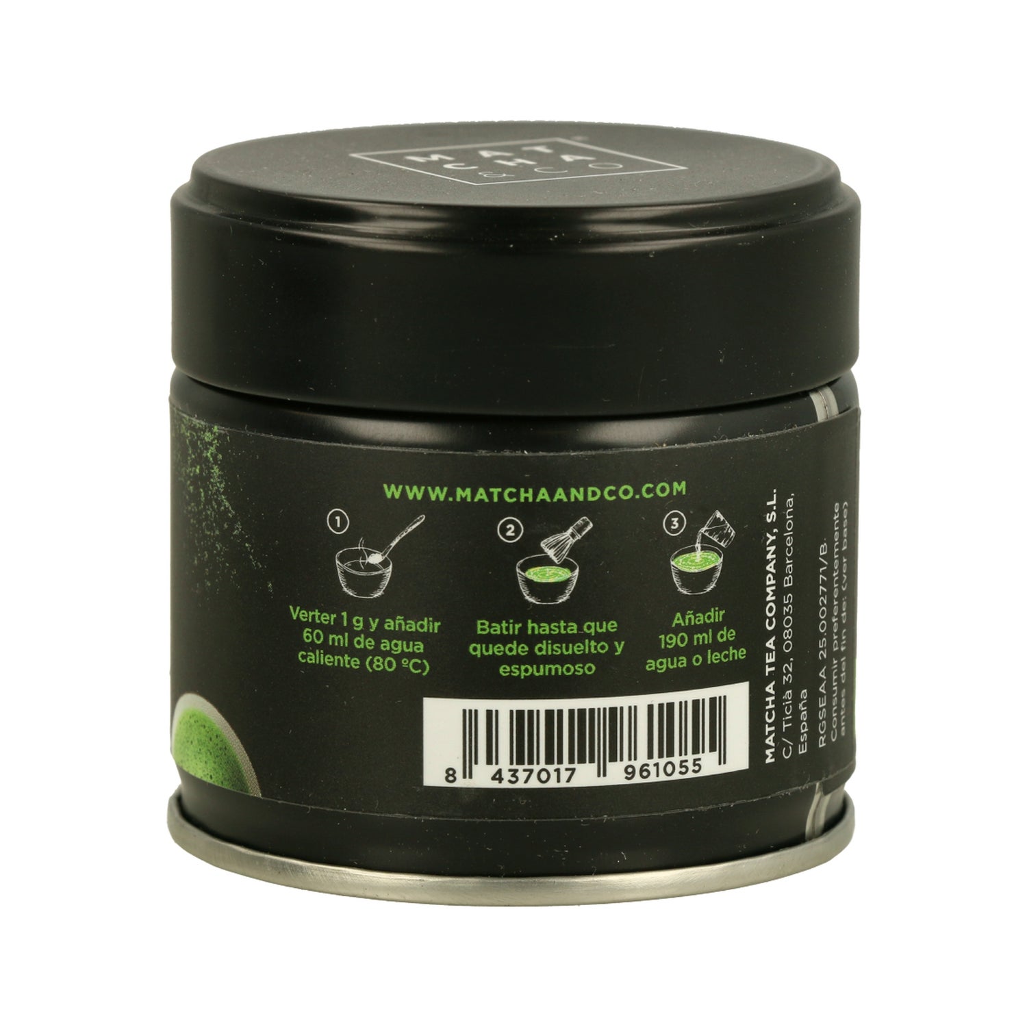 Matcha & Co Chá Verde Matcha Premium 100% Orgânico 30g é chá matcha puro de grau cerimonial proveniente de Quioto, Japão. É rico em antioxidantes, cafeína e L-Teanina, e tem um sabor puro e intenso, ideal para amantes do matcha. É ideal para tomar com água ou com leite, para fazer matcha latte.