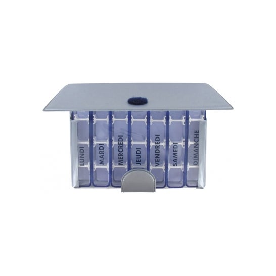Caixa de comprimidos semanal feita de metacrilato e coberta de tecido, o que favorece o armazenamento de medicamentos. Tem 7 compartimentos com tampa de abertura, um para cada dia da semana, o que permite o acesso rápido aos medicamentos. Ajuda a lembrar e a preservar o tratamento médico. O seu tamanho compacto torna-o ideal para o transporte.