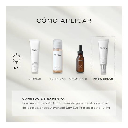 Medik8 Advanced Day Ultimate Protect SPF50 50ml é um fotoprotetor que oferece um alto nível de proteção solar que contribui para prevenir os sinais de envelhecimento cutâneo prematuro.