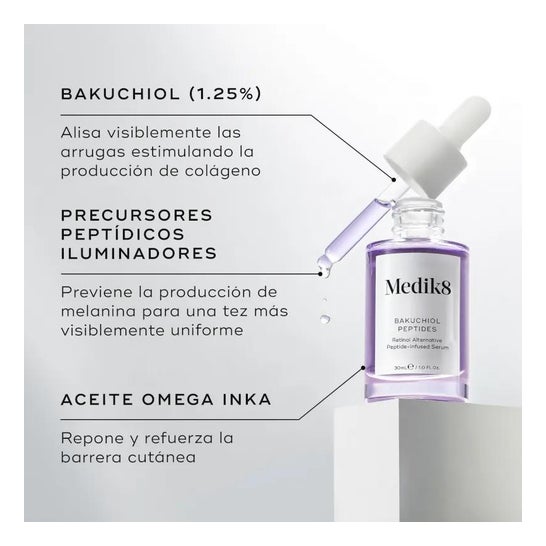 Medik8 Bakuchiol Peptides 30ml é um sérum que ajuda a prevenir os sinais da idade.