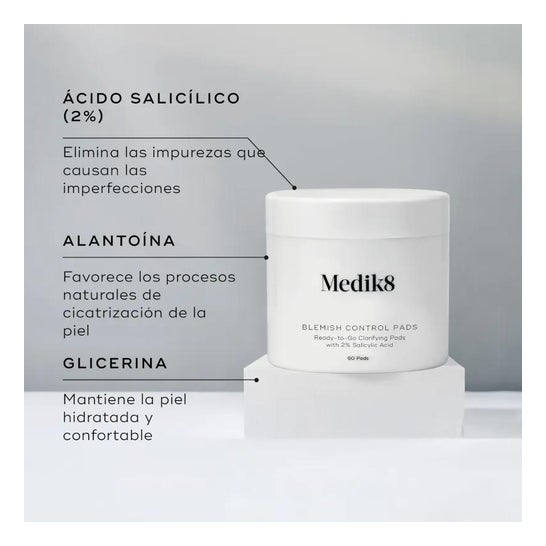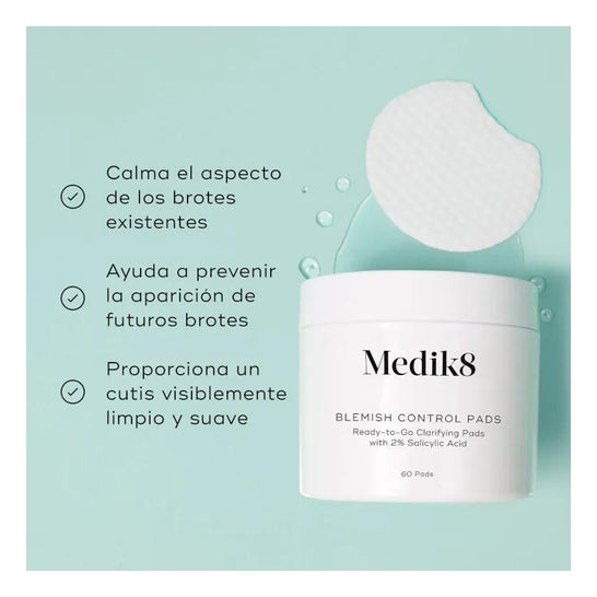 Os Blemish Control Pads são uma solução para tratar as imperfeições, os poros dilatados, os pontos negros e ajudar a reduzir o excesso de produção de gordura graças a esses discos de algodão suaves que não contêm álcool. Esta solução para tratar a acne é composta por 2% de Ácido Salicílico que ajudará a desbloquear os poros e a esfoliar a sua pele.