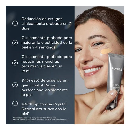 Utilizar à noite. Primeiro limpe e depois aplique o Crystal Retinal 3 no rosto e no pescoço.