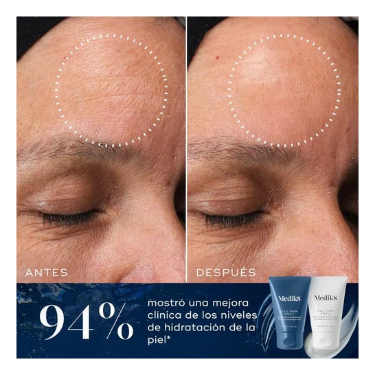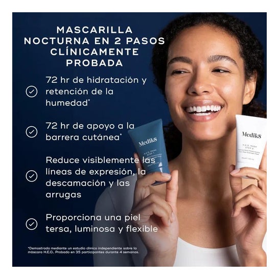 Máscara nocturna de dois passos que contribui para uma hidratação duradoura do rosto. Ajuda a melhorar a função de barreira da pele e pele visivelmente gorda e resplandecente. Contém 1 x 50ml de gel e 1 x 50ml de creme, cada um baseado em activos hidratantes, emolientes e oclusivos, que se combinam num plano de 2 passos para ajudar a repor a pele seca e desidratada.