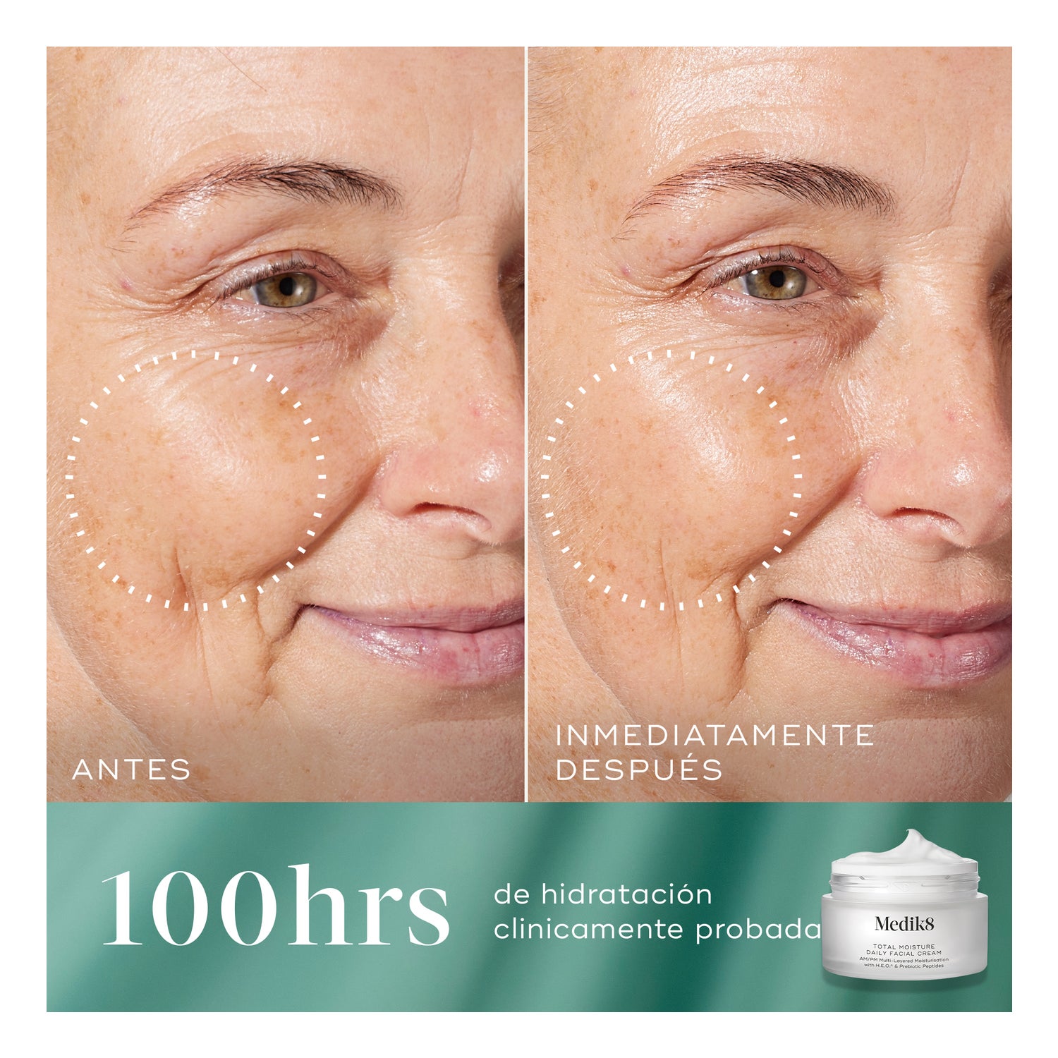 Repõe a hidratação e aumenta a elasticidade e a firmeza da pele, fortalecendo a barreira cutânea.