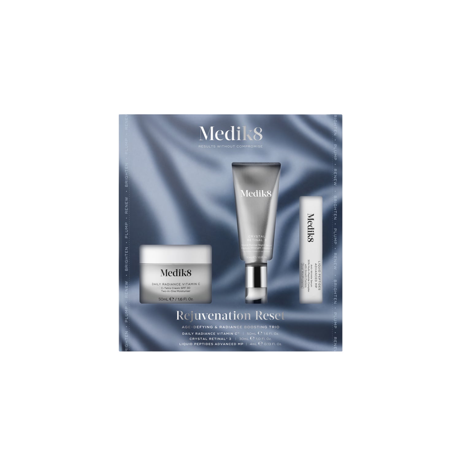 Ilumina, protege e renova tua pele com os ingredientes essenciais CSA e peptídeos da Medik8 de eficácia comprovada.
