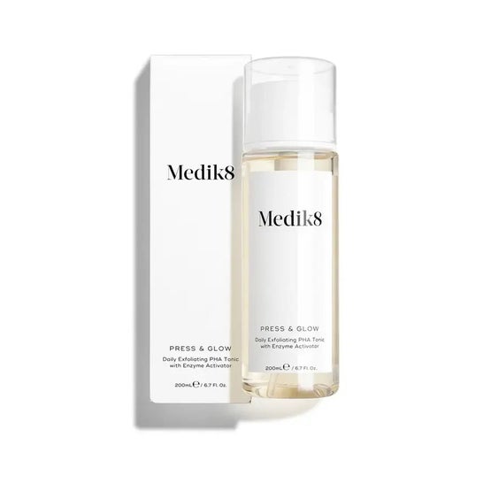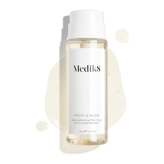 Medik8 Press & Glow Tonic 200ml é um tônico facial esfoliante para uso diário.