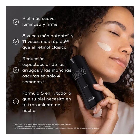 Medik8 R-Retinoate Intense 50ml é um creme facial concentrado para a noite formulado com retinaldeído e ceramidas. Ajuda a alisar a pele do rosto, pois contribui para preencher as pequenas rugas e linhas de expressão. Seus componentes têm propriedades regeneradoras e reafirmantes. Indicado para todos os tipos de pele.