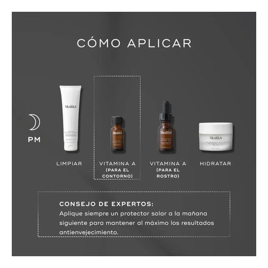 Misture suavemente. A aplicação de retinol deve ser gradual. Use duas vezes por semana durante as duas primeiras semanas, uma noite sim e outra não durante as duas seguintes, e depois todas as noites.
