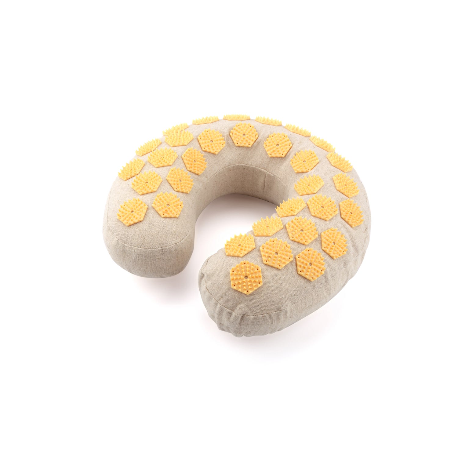 O design em forma de U da colchonete de acupressão permite um suporte efetivo para o pescoço, ombros e cabeça, tornando-se um aliado perfeito para o relaxamento diário e o apoio terapêutico. Graças à sua superfície com pontas, é possível desfrutar dos benefícios da acupressão de maneira simples e confortável em casa. Esta técnica, conhecida há séculos, ajuda a: