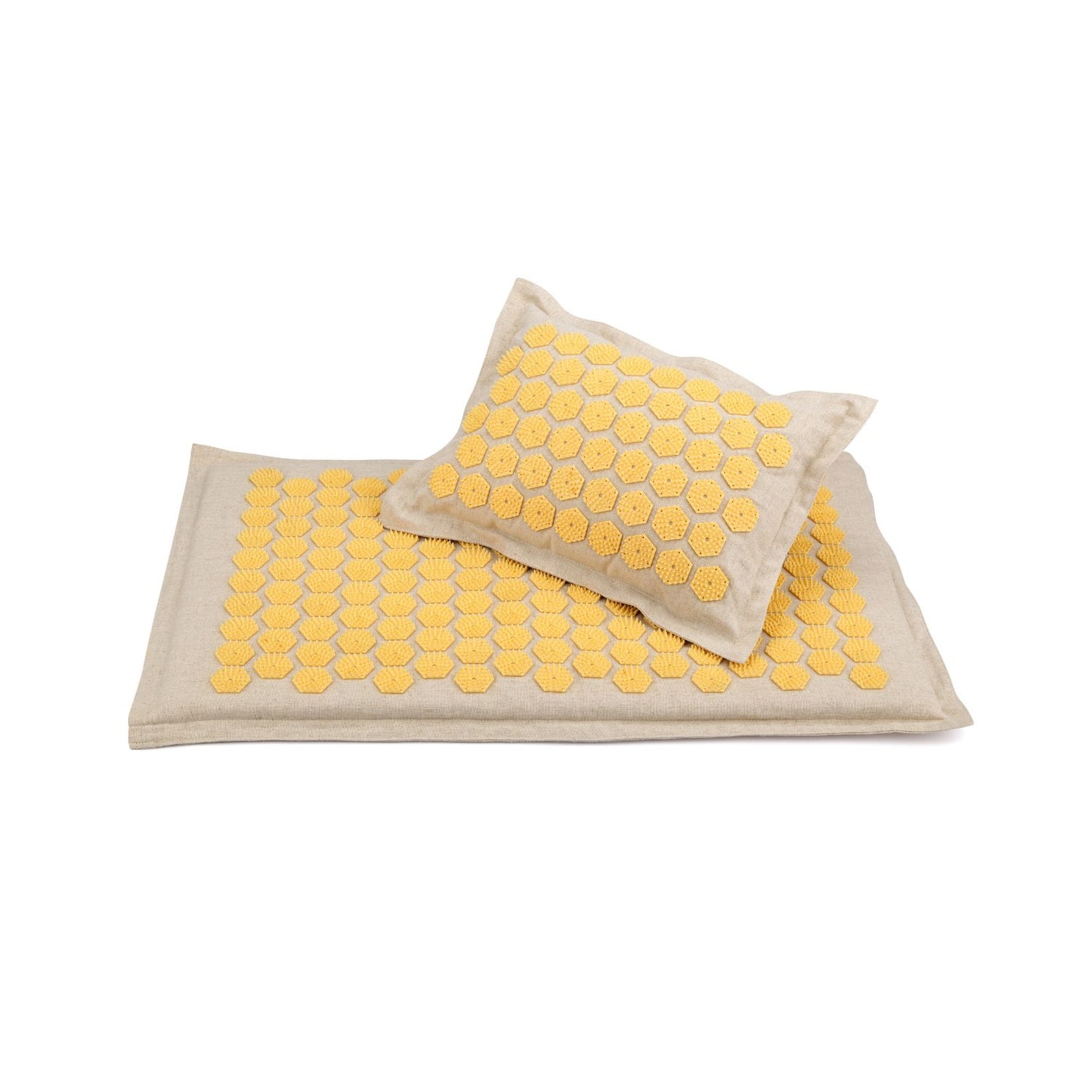 O produto é fabricado com materiais de alta qualidade, incluindo um inserto de fibra de coco que garante tanto conforto quanto durabilidade. Os picos são elaborados com um material HIPS hipoalergênico, assegurando a segurança para peles sensíveis.