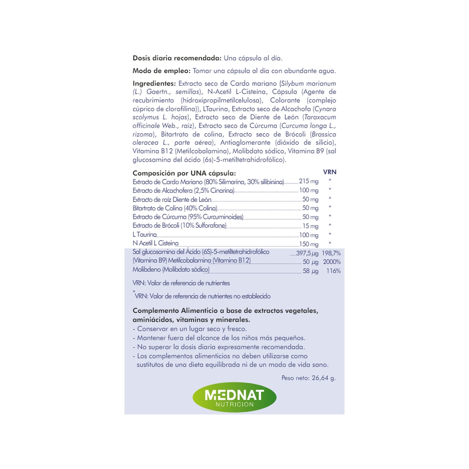Formulado com extrato de cardo mariano, extrato de alcachofra, extrato de dente de leão, bitartrato de colina, extrato de cúrcuma, extrato de brócolis, L-taurina, N Acetil L Cisteína, vitaminas B9 e B12 e molibdênio.