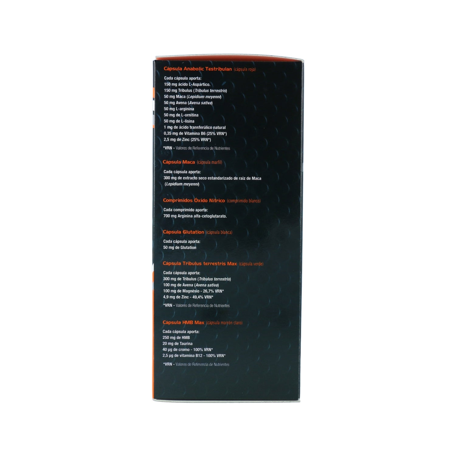 Um suplemento alimentar em formato de cápsula, especialmente concebido para ajudar a estimular naturalmente a produção de testosterona, aumentando assim o desempenho e o vigor dos homens, graças ao seu composto à base de óxido nítrico, arginina e alfa-ketoglutarato.