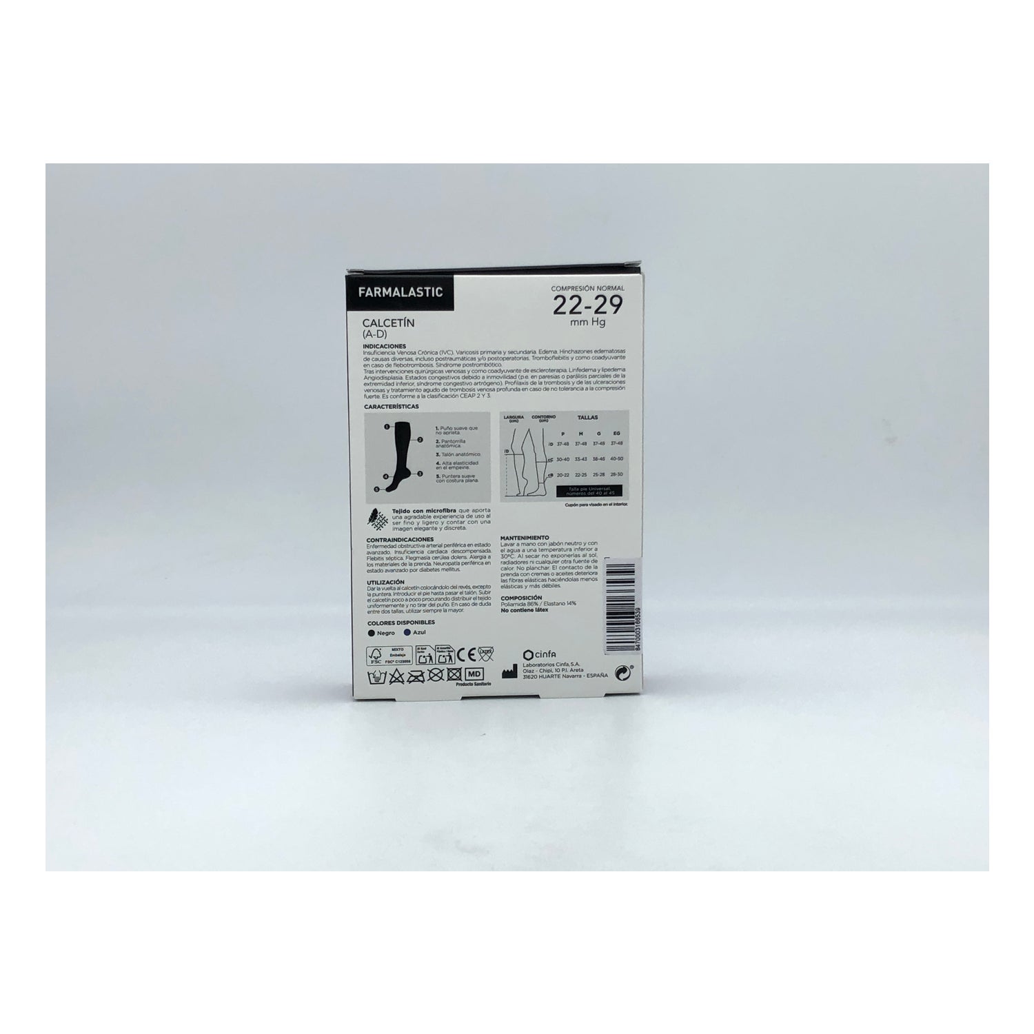 Farmalastic Meia (A-D) Compressão Normal T-média Preta 1 Par são meias para aliviar as molestias derivadas de peso nas pernas por problemas circulatórios ou que passam longos períodos em pé.
