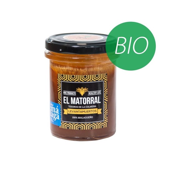 Mel ecológico de abelha com geleia real. O mel levanta-mortos é um mel com uma característica especial, pois tem um rico aporte de nutrientes. Fornece energia, vitalidade e ajuda a aumentar as defesas. A geleia real é composta por água (que constitui 60 por cento do seu conteúdo), na sua composição também podemos encontrar proteínas e lípidos, entre outros. As vitaminas têm uma grande presença, na geleia real encontramos principalmente as vitaminas B1, B2, B5 e B6. Também está presente a vitamina B8 em menor proporção e o ácido fólico.