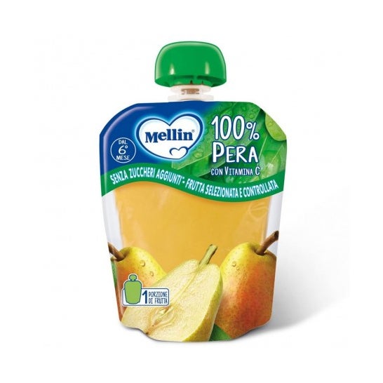 Mellin Pera é um alimento pensado para bebês a partir do sexto mês de vida, recomendado por pediatras. É composto por purê de pera sem açúcares adicionados, elaborado com fruta de alta qualidade e fortificado com vitamina C para uma nutrição completa.