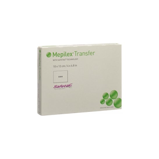 A Transferência de Mepilex Med10X12Cm 5P é um curativo de silicone projetado para o drenagem de feridas, adequado para uma ampla gama de feridas exsudativas e complexas, assim como para proteger feridas não exsudativas e a pele circundante delicada. Pode ser aplicado sob bandagens elásticas compressivas e permanecer na lesão durante tratamentos como a radioterapia e a terapia hiperbárica.
