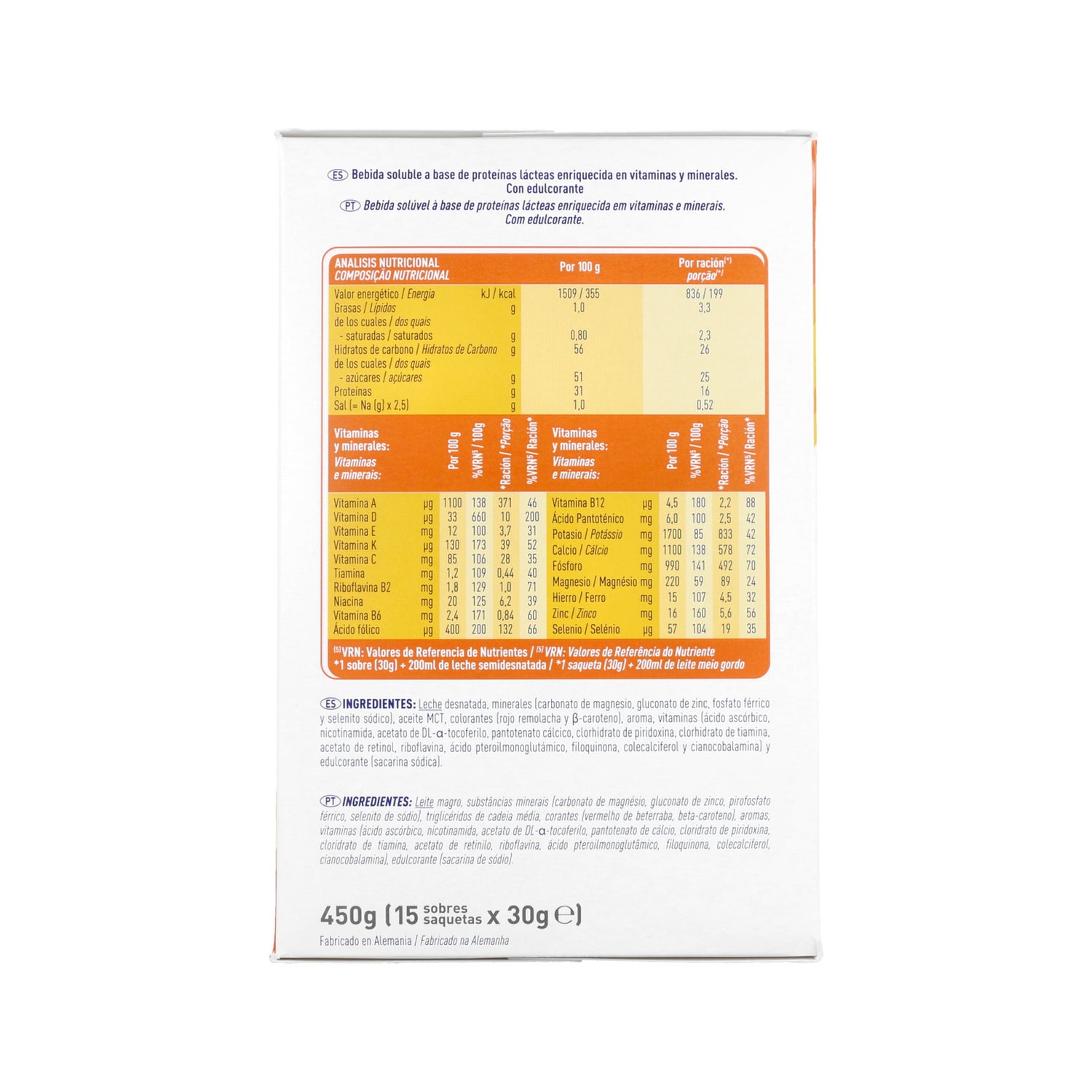 Este produto é pobre em gordura e colesterol. É adequado para diabéticos e não contém glúten nem sacarose. É um suplemento nutricional com alto conteúdo protéico, ideal em situações de dietas restritivas ou se as necessidades dietéticas forem aumentadas.