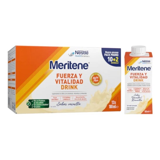 Meritene Força e Vitalidade Bebida Baunilha 12x125ml é um complemento alimentar rico em proteínas, vitaminas e minerais que contribuem para combater a sensação de cansaço, fadiga e fraqueza muscular. Sua apresentação em formato de batido torna-os fáceis de consumir em qualquer lugar e a qualquer momento do dia. Além disso, ajuda a complementar a dieta em caso de desgaste físico elevado ou desequilíbrio nutricional. Contém 12 garrafinhas de 125ml cada uma.