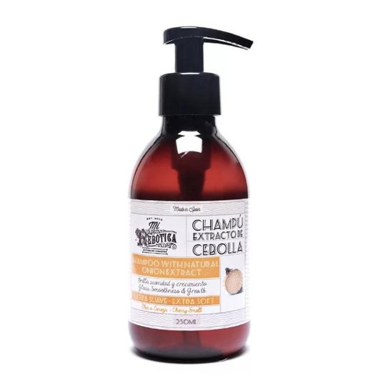 Champô formulado com extrato de cebola, com aroma a cereja. O extrato de cebola contém múltiplas propriedades devido aos compostos fenólicos e sulfurados que contém a cebola. Ideal para estimular o crescimento do cabelo. É antimicrobiano, purificante, antisséptico, anti-inflamatório e calmante. Além disso, tem propriedades antioxidantes e anti-envelhecimento. Favorece a fotoproteção, proteção da coloração capilar. Está formulado livre de sulfatos, pensado para reparar a fibra capilar e nutrir intensamente. Ideal para cabelo seco ou encaracolado.