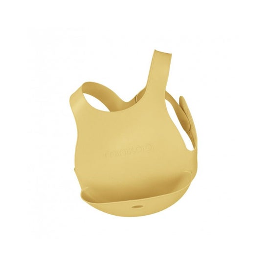 Minikoioi Flexi-Bib Babete Amarelo é um acessório projetado para facilitar a hora de comer. Sua estrutura compacta é semelhante à de um babador de tecido, o que o torna prático e funcional.
