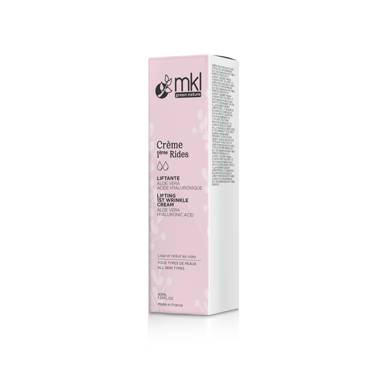 Mkl Creme Primeiras Rugas Suavizante 40 ml é um tratamento projetado para combater os primeiros sinais da idade, a fadiga e a desidratação da pele. Esta creme é enriquecida com ácido hialurônico e aloe vera de cultivo biológico, ingredientes que proporcionam uma intensa hidratação e suavidade, contribuindo para uma aparência mais fresca e radiante da pele.