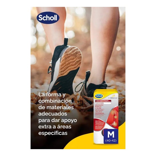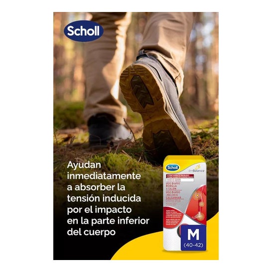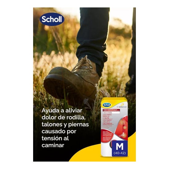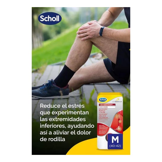 Scholl In-Balance Knee and Heel Size M 1pair é uma palmilha concebida para aliviar as dores nos joelhos e nos calcanhares.