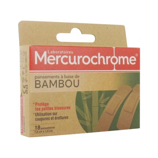 São pensos com uma base de fibra de bambu natural. Com o seu suporte de fibras naturais de bambu, os pensos desenvolvidos pelos Laboratórios Mercurochrome protegem pequenos ferimentos e podem ser usados em pequenos cortes e arranhões. Tamanho do penso: 7,2cmx1,9cm. Apresentação de 18 unidades.