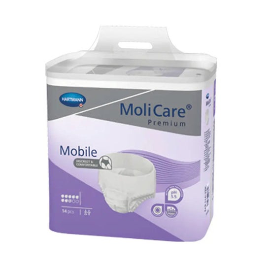 MoliCare Mobile Super fornece absorção e proteção para pessoas que sofrem de vazamentos de urina mais volumosos. Estas peças de vestuário descartáveis adaptam-se perfeitamente ao corpo de cada utilizador, oferecendo conforto e segurança.