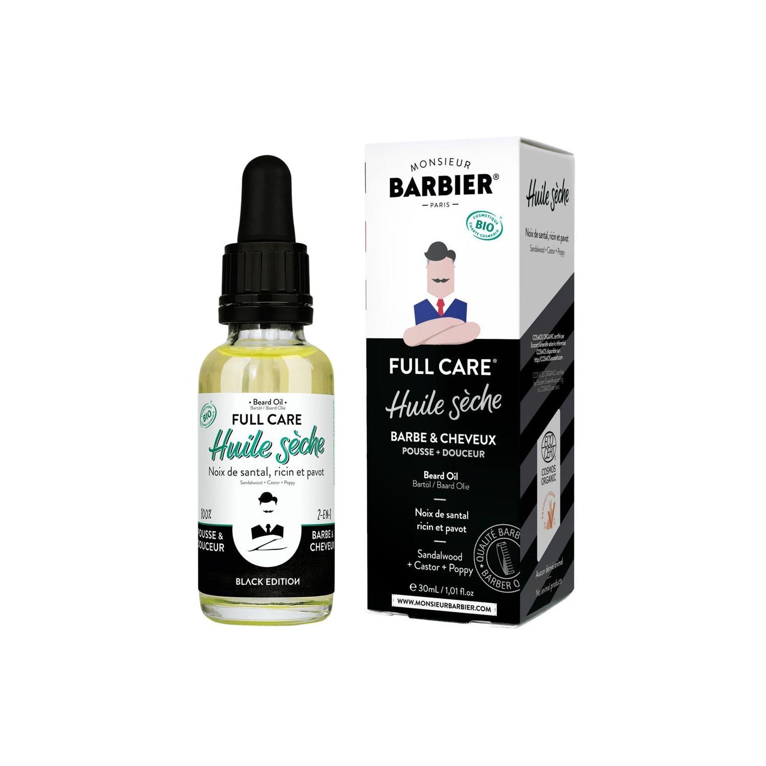 Monsieur Barbier Óleo Seco Bio Barba Cabelo Black Editi 30ml é uma fórmula inovadora projetada especificamente para o cuidado da barba e do cabelo. Este óleo seco é apresentado em uma elegante versão de cor preta e está enriquecido com um aroma distintivo que combina notas de couro e tonka amadeirado.