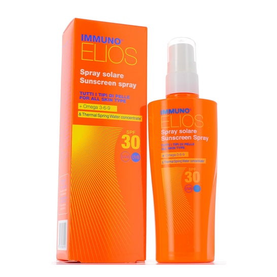 Protetor solar em spray formulado com água termal, ácidos gordos essenciais e filtros solares SPF30 de largo espetro. Ajuda a proteger a pele dos efeitos nocivos dos raios solares, ao mesmo tempo que refresca e hidrata o corpo. Os seus ingredientes ajudam a prevenir o aparecimento de manchas escuras. Indicado para todos os tipos de pele.