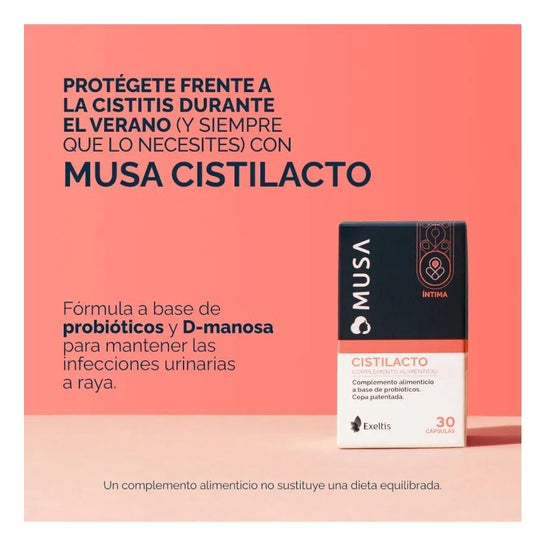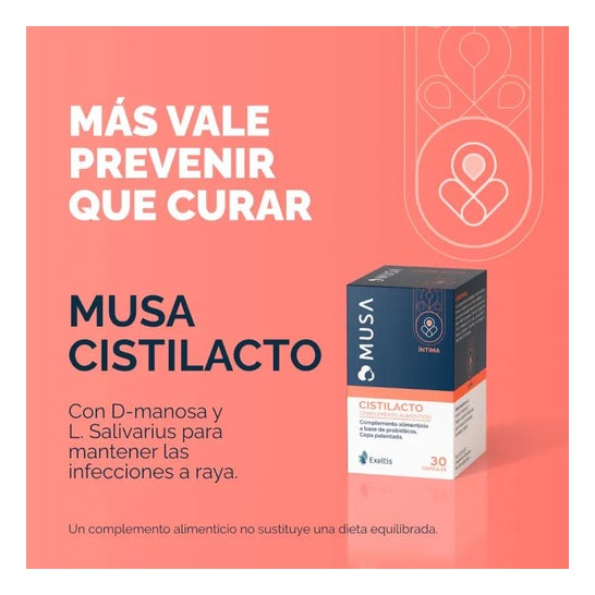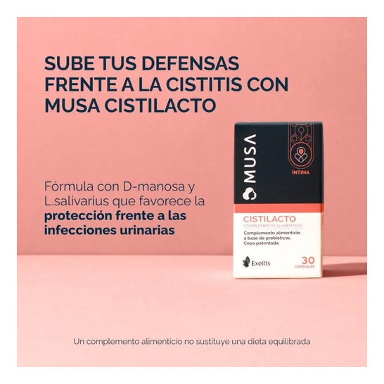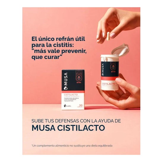 MUSA CISTILACTO é um suplemento alimentar à base de probióticos e D-manose que contribui para o normal funcionamento do trato urinário. A cistite é uma infeção comum do trato urinário que afecta mulheres de todas as idades, causando inflamação na bexiga e na uretra. Os sintomas incluem desconforto ao urinar, como ardor e dor, e a infeção por bactérias é a causa mais comum desta doença. O equilíbrio do pH vaginal desempenha um papel essencial na prevenção das infecções geniturinárias, uma vez que um pH desequilibrado pode favorecer o crescimento de bactérias patogénicas. A manutenção de um pH vaginal ótimo é crucial para prevenir a cistite e outras infecções recorrentes do trato genitourinário. A importância da prevenção da cistite reside não só no desconforto e na dor da cistite, mas também na redução do uso de antibióticos. Para além do impacto que os antibióticos podem ter na microbiota vaginal e intestinal, a E. Coli pode desenvolver resistência aos antibióticos, diminuindo a sua eficácia. As medidas preventivas contra a cistite incluem: aumento da ingestão de líquidos, urinar com a frequência necessária e lavagem adequada da zona vulvovaginal. A preocupação com o aumento da resistência bacteriana devido ao uso de antibióticos deu origem a novas estratégias de tratamento para as infecções do trato urinário, como o uso de probióticos, microrganismos vivos capazes de regular a microbiota vaginal. Microbiotas ricas em Lactobacillus estão associadas a uma melhor saúde vaginal, à manutenção de um pH adequado ao ambiente e à proteção contra agentes patogénicos e infecções como a cistite.