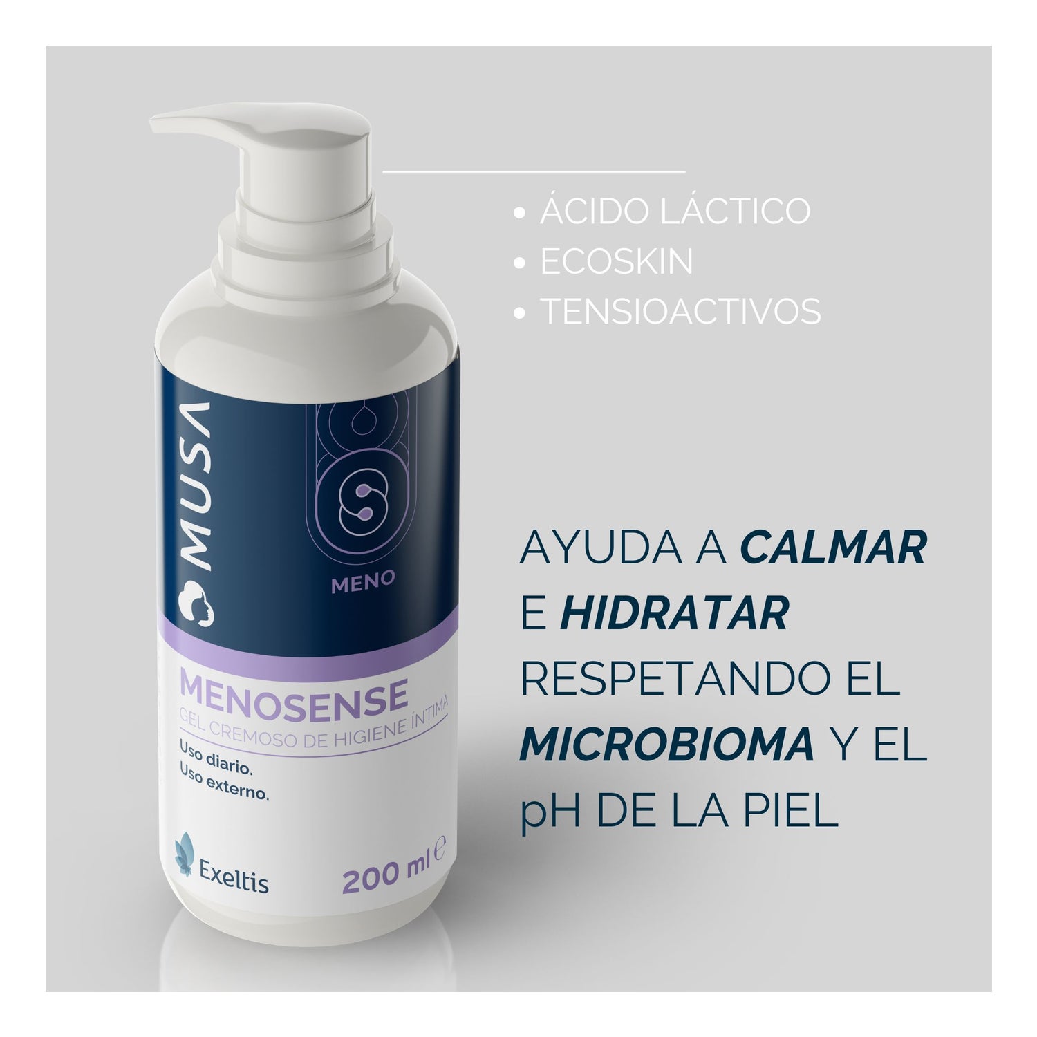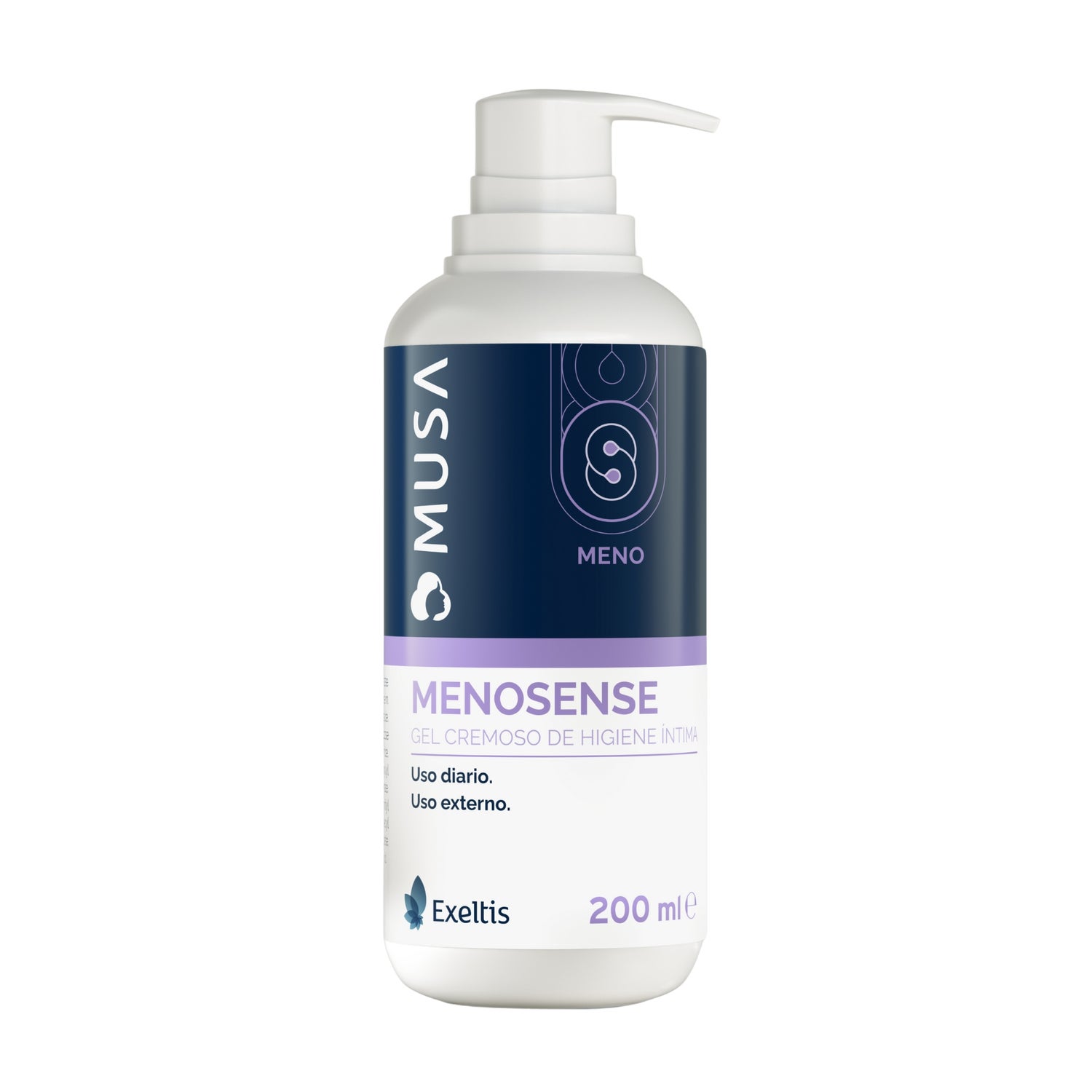 Musa Menosense é um gel cremoso de higiene íntima que acalma e hidrata respeitando o microbioma e ajuda a manter o pH fisiológico da área para mulheres na fase da menopausa.